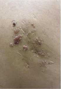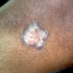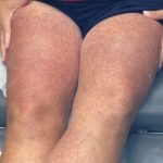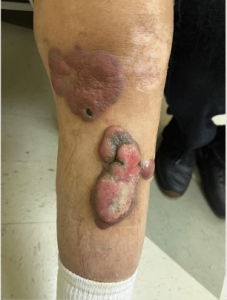 CHIEF COMPLAINT: violaceous plaques on left leg