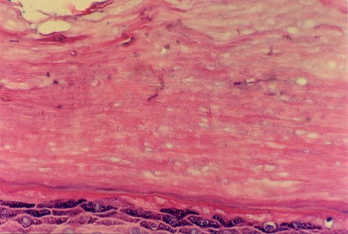 High power depicting inconspicuous hyperpigmented hyphae within the stratum corneum. (H+E stain, 400x)