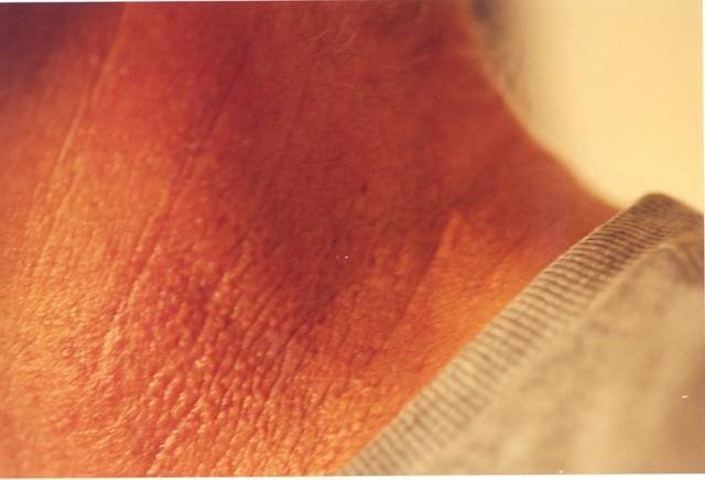 CHIEF COMPLAINT: Redundant skin around his neck with a yellow discoloration