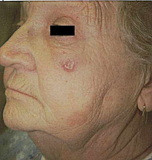 CHIEF COMPLAINT: A progressively enlarging papule on the patient’s left cheek