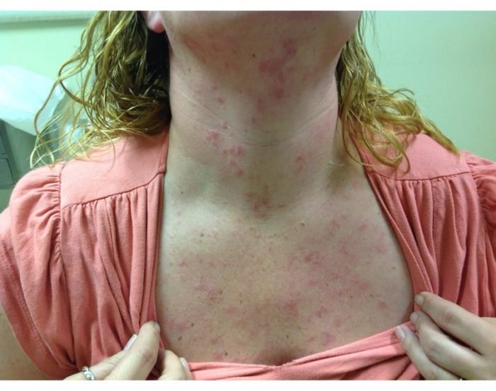 On physical examination, the patient exhibited multiple grouped pink, translucent, and hemorrhagic thick-walled vesicles, resembling “frog spawn.” The vesicles were firm to palpation and remained intact without any signs of rupture.