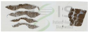 CLINICAL HISTORY: A 91-year-old gentleman with a history of hypertension, gastroesophageal reflux disease, and vitiligo presented to the clinic with two large violaceous ulcerated plaques on his left lower leg. The patient stated that a papule had formed four months prior after a ground-level fall, and it had continued to grow over the last few months, starting to bleed within a few weeks of his appointment. He denied experiencing pain, itchiness, fatigue, or other B symptoms, such as fever, weight loss, or night sweats. The patient also denied recent travel, smoking, using illicit drugs, drinking alcohol, or taking any new medications. His family history was notable for a deceased brother who had an unknown type of cancer. Current medications included carvedilol, doxazosin mesylate, isosorbide mononitrate, omeprazole, loratadine, clopidogrel bisulfate, losartan, benzonatate, and folic acid.
