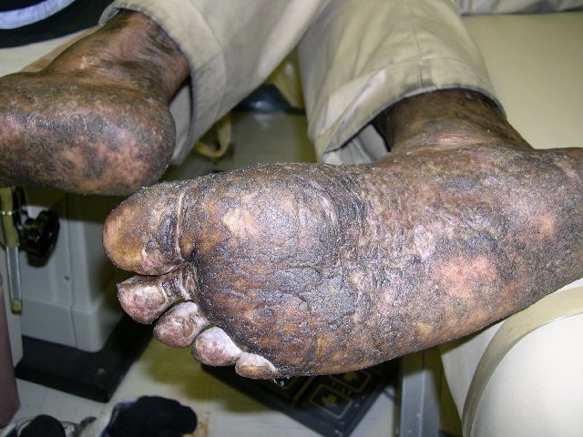CLINICAL HISTORY: The patient is a 60-year-old Latin male presenting for evaluation of itchy patches in his bilateral axillae, inguinal region, and gluteal folds. The patient states this eruption is ongoing for the previous three months and is progressively worsening. Has not tried any topical or oral OTC or prescription medications to treat the lesions. He feels as if the lesions began after starting a new medication. He started taking Lipitor, Metformin, and Lotrel four months prior to the onset of lesions.