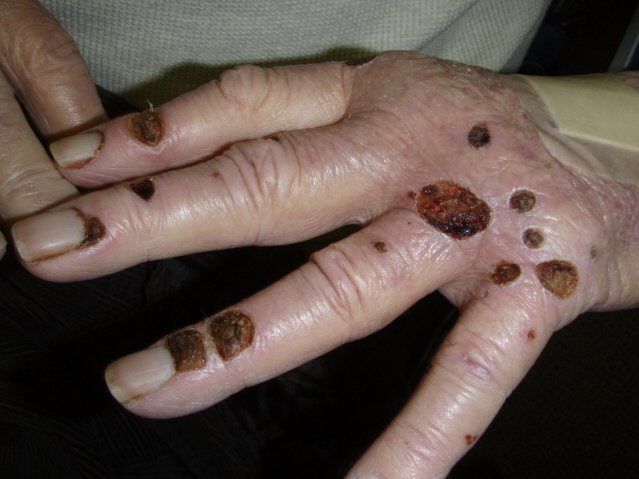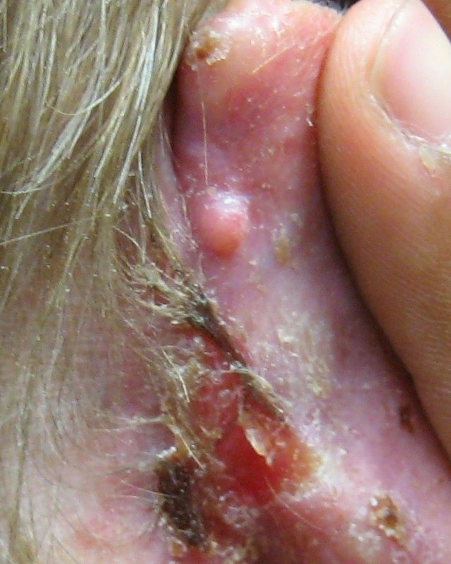 Retroauricular ulcer in a patient with a history of multiple skin cancers
