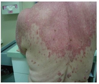 Pruritic, purple plaques on the legs and axilla