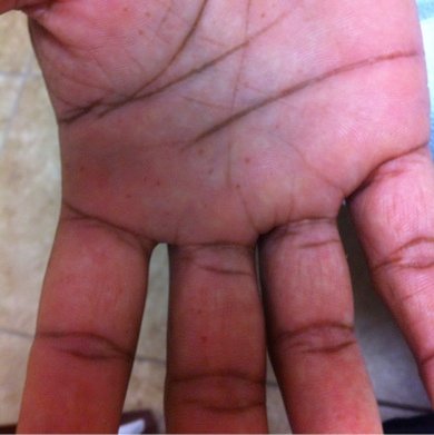 CLINICAL HISTORY: A 33-year-old Caucasian woman noticed in 1999 the appearance of pruritic “sun spots” on both lower extremities. She associated the appearance of the lesions with taking antibiotics that she received for strep pharyngitis. She did not remember the name of the antibiotics but did recall that the packaging specified the need for sun avoidance while taking them. She was, however, exposed to several hours of sun each day while vacationing during this time, and noticed the development of the lesions within one week of being on the medication. She subsequently presented to our clinic in June of 2007. She notes that she consulted dermatology out of curiosity regarding the lesions as well as for guidance regarding the severe pruritus associated with them. She noted that the pruritus was much worse with activity and in the winter season, but improved when the involved areas were exposed to sunlight. Review of systems was negative for flushing, lightheadedness, dizziness, anaphylaxis, nausea, vomiting, diarrhea, and bone or muscle pain. The patient’s medical history was unremarkable. Family history was negative for any chronic cutaneous disorders or other related findings.