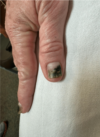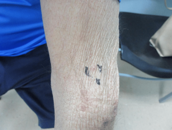 CHIEF COMPLAINT: Persistence of pigmented lesion on forehead